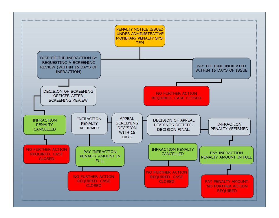 The Administrative Monetary Penalty System (AMPS) is an improved way to pay and dispute Penalty Notices (tickets) for By-Law violations. The process allows the Municipality to manage disputes regarding Penalty Notices instead of the provincial courts.